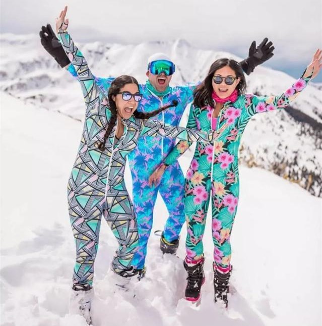 這靈感難道來自兒童游泳池的皮球或是奶奶家的花床單?實(shí)在想不懂他們?cè)诨┑臅r(shí)候喜歡穿成五顏六色。話說一開始在滑雪服上運(yùn)用鮮艷的顏色,是因?yàn)樵诎籽┌}皚的世界里,撞色強(qiáng)烈的色彩搭配可以讓滑雪者突出,提升滑雪樂趣。但是也不至于這樣隨意的顏色搭配吧,只能說之前的滑雪服設(shè)計(jì)審美落后得讓人發(fā)指。