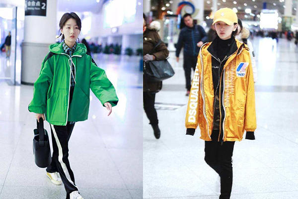 從大部分明星的選擇中不難看出,超大碼是最明顯的一項標準!其中最受寵的Balenciaga就在最近三季的女裝中玩遍了沖鋒衣的各種花樣,減少繁復的功能配件,加入更時髦的超大廓形,憑一己之力將原本平平無奇的沖鋒衣變?yōu)闀r尚圈一霸。除了女明星們偏愛的卡其色,另外幾款藍綠色沖鋒衣也被街頭時髦人穿了個遍。