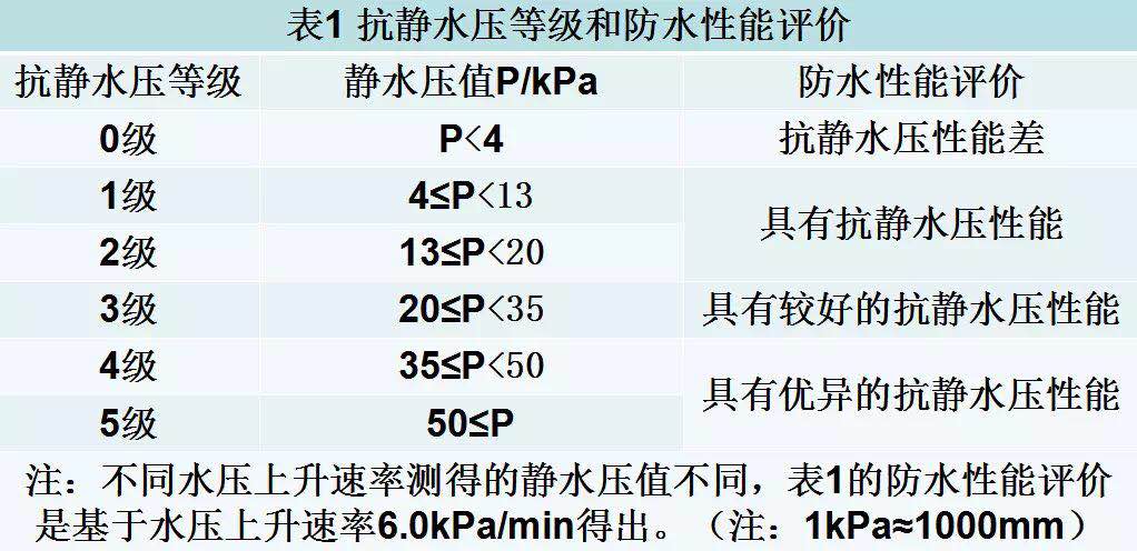數(shù)據(jù)來自:GB/T4744-2013《紡織品 防水性能的檢測(cè)和評(píng)價(jià) 靜水壓法》