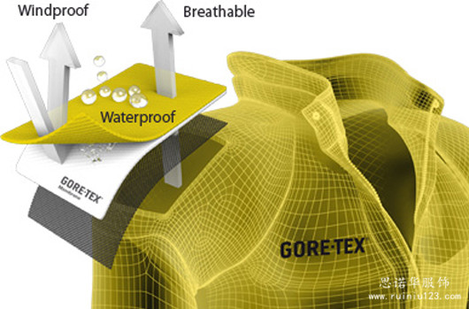 防水薄膜以GORE-TEX?的ePFTE(聚四氟乙烯)薄膜最為著名,其它品牌多采用PU涂層,功能有強有弱,體驗也各不相同。沖鋒衣采用了GORE-TEX?的面料。目前市面上主流的衡量標準是通過測試面料可以承受多少毫米水柱(mmH2O,或mm)的壓強,一般沖鋒衣至少可以達到3000mm,而在極限環(huán)境下的沖鋒衣和專業(yè)滑雪服可以達到20000mm以上。在沖鋒衣制作中專業(yè)沖鋒衣廠家思諾華制衣也都會根據客人的指數要求進行防水面料的訂購。