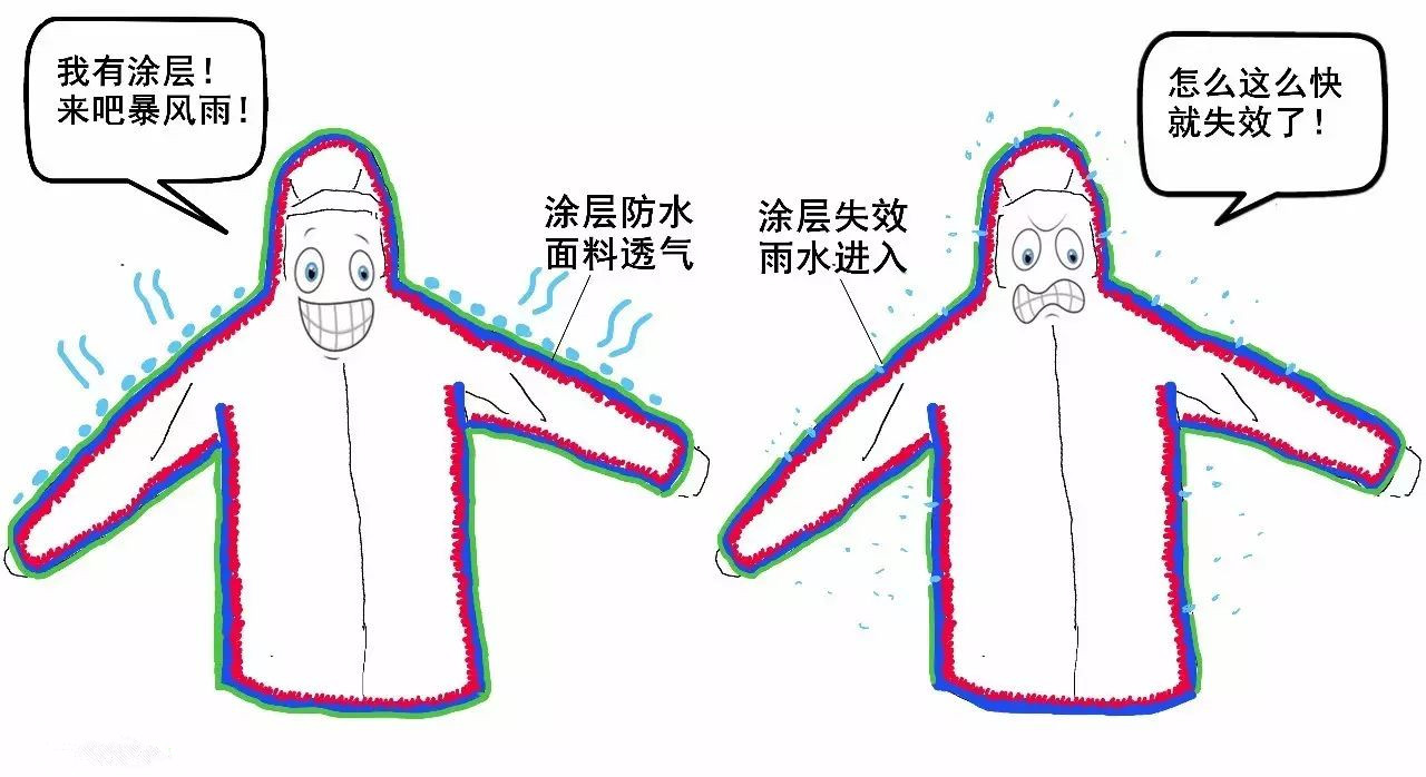 涂層損壞后衣服就會進水。