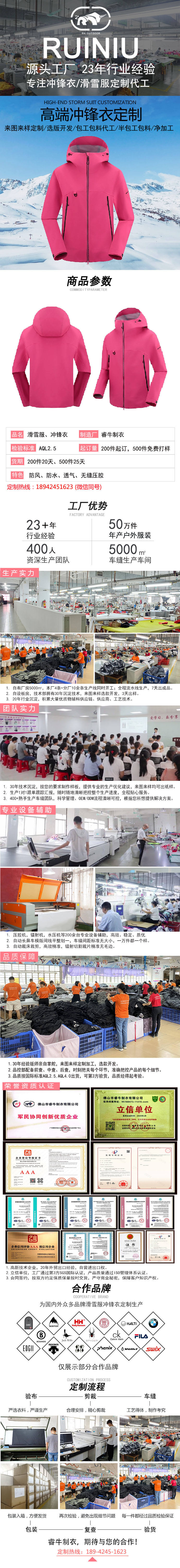 持續(xù)23年專注沖鋒衣、滑雪服定制加工廠家