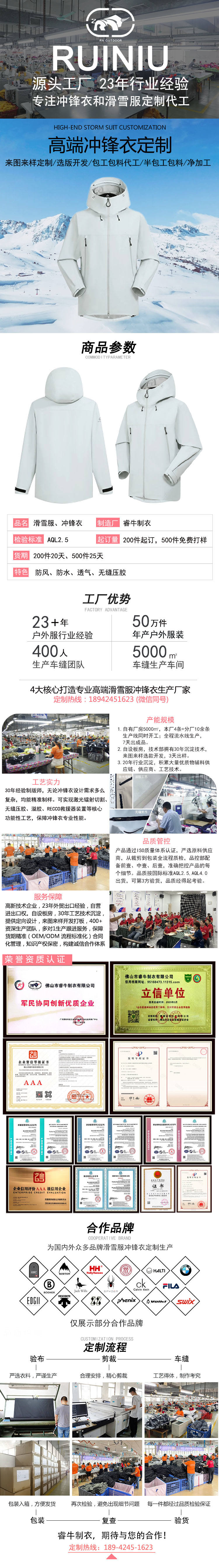 高端壓膠沖鋒衣定制 擁有專業(yè)生產(chǎn)設備,400+資深生產(chǎn)團隊