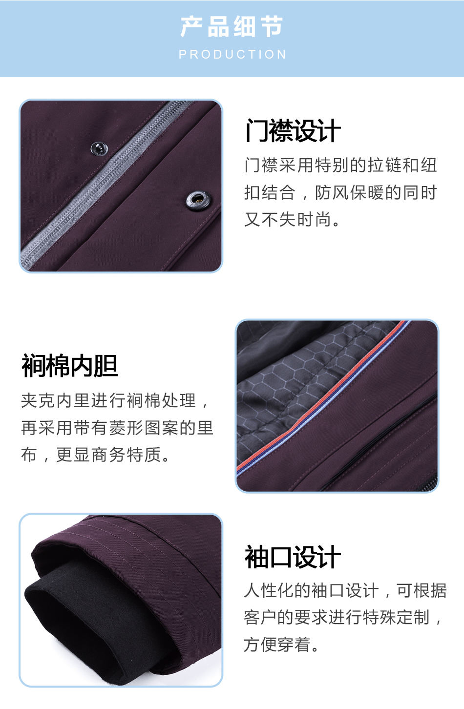 門(mén)襟設(shè)計(jì):門(mén)襟采用特別的拉鏈和紐扣結(jié)合,防風(fēng)保暖的同時(shí)又不失時(shí)尚。