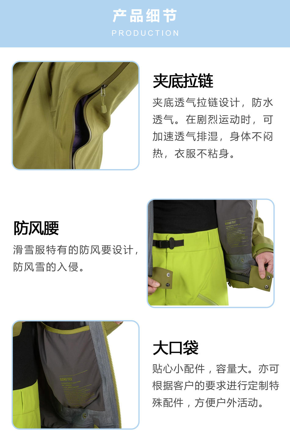 防風(fēng)腰:團體滑雪服生產(chǎn)特有的防風(fēng)腰設(shè)計,防風(fēng)雪的入侵。